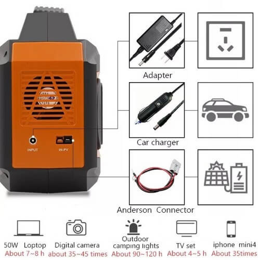 Сонячної панелі потужність котрих має що найменше 18V, для цього передбачено спеціальний роз'єм Андерсона 50W~150W за 10-20 годин
