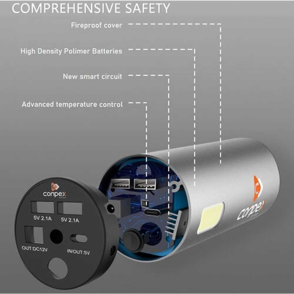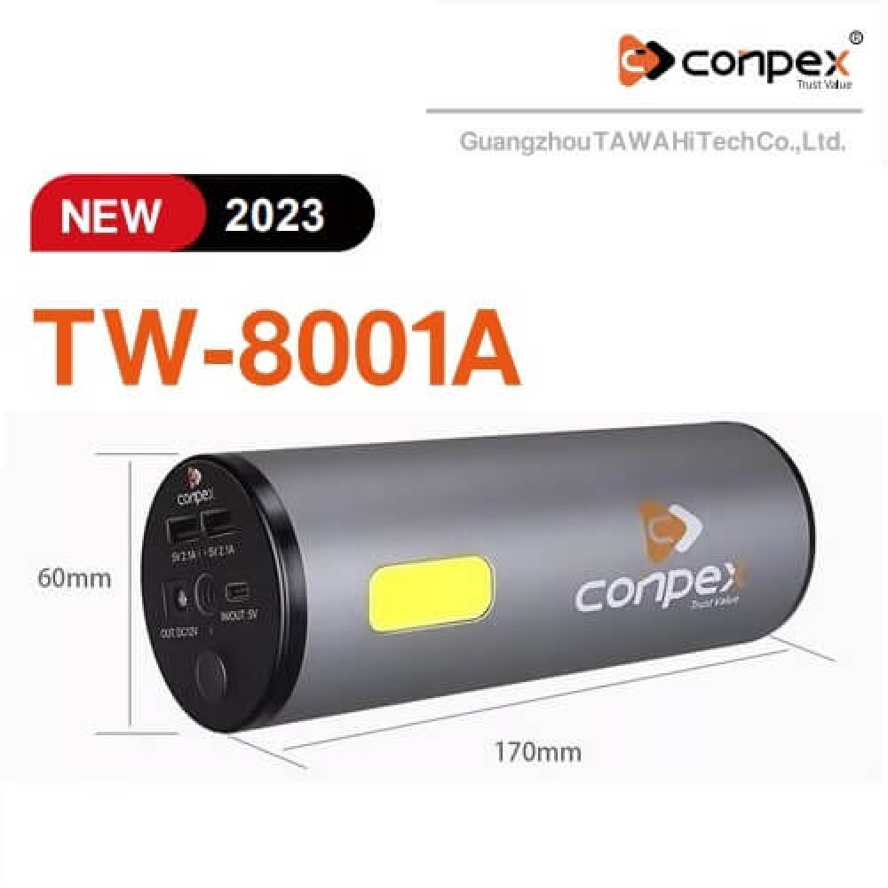 Акумулятор портативний Conpex TW-8001А -31200mAh 3.7V (116Wh) 50W –це потужний незалежний зарядний пристрій, що стане необхідним за умови неможливостівикористання стаціонарної електромережі.
