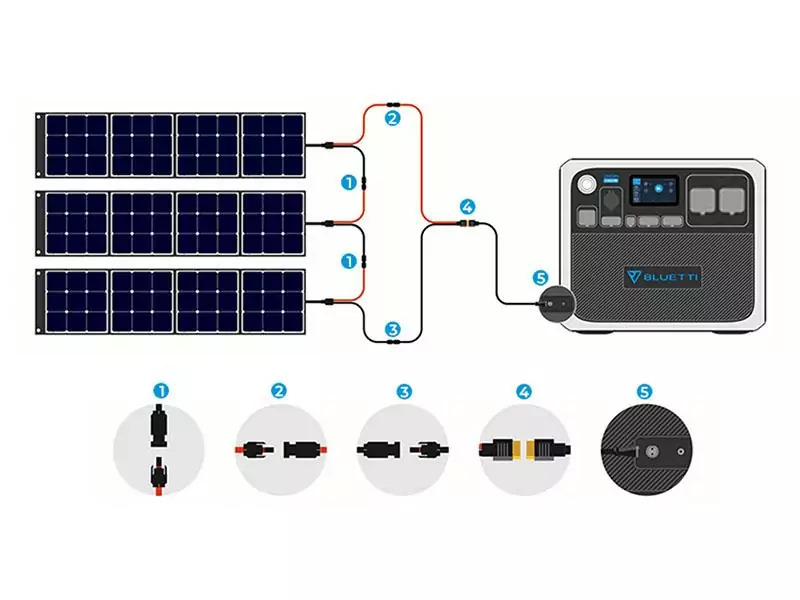 Напруга холостого ходу BLUETTI AC200Max становить від 10 до 145 В. Якщо ви вирішили використовувати панелі іншого виробника, переконайтеся, що їхня напруга холостого ходу знаходиться в цьому діапазоні. В іншому випадку вони можуть призвести до спрацювання захисту пристрою від низької або перенапруги.