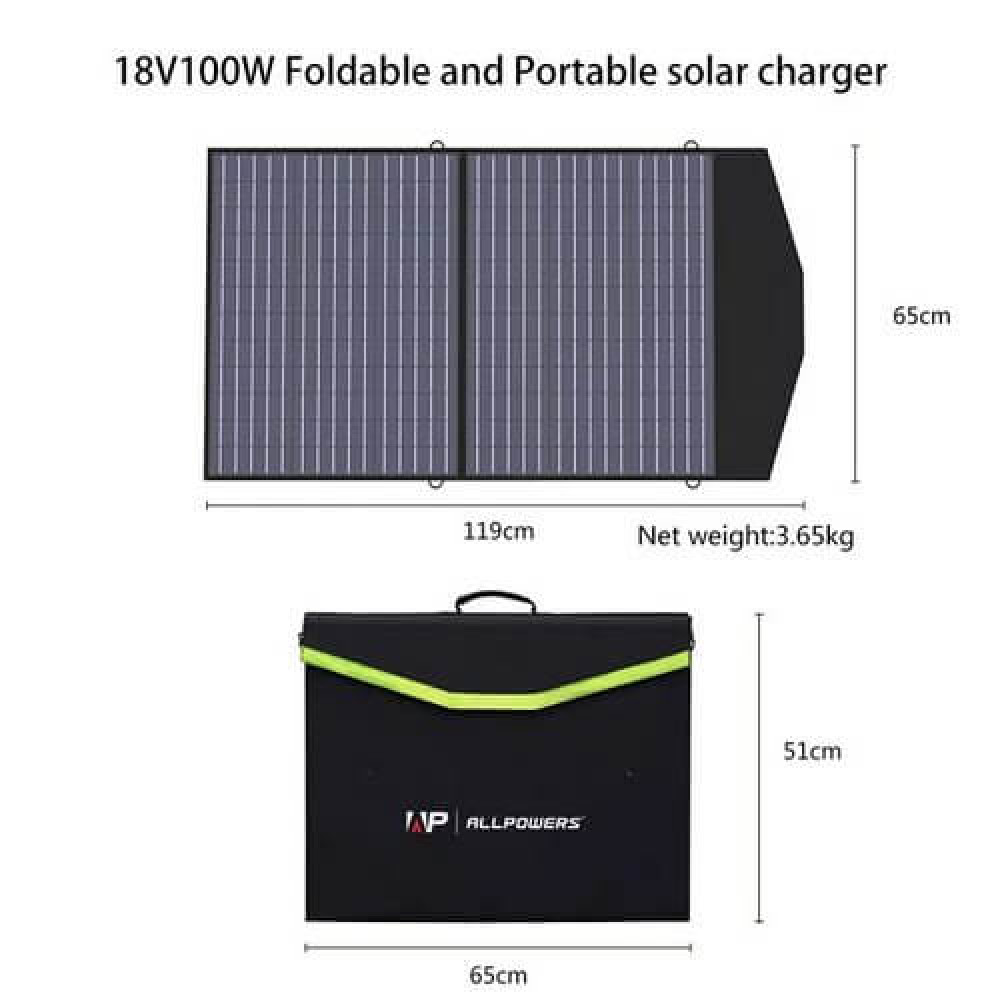 Зарядний пристрій на сонячній батареї Allpowers AP-SP18V100W (027-BLA)