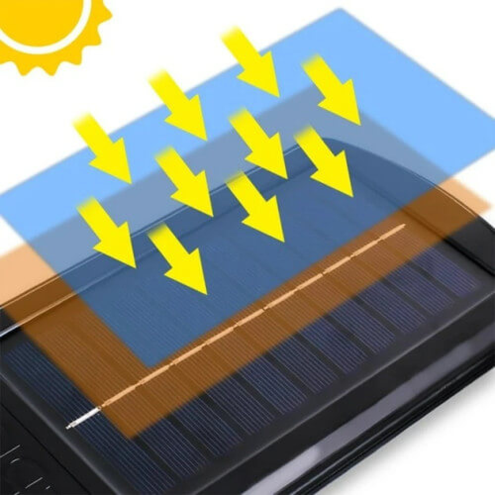Використовуючи цю накопичену енергію, світлодіодні ліхтарі (включені в цей сонячний ліхтар) автоматично вмикаються вночі, коли виявляють рух.