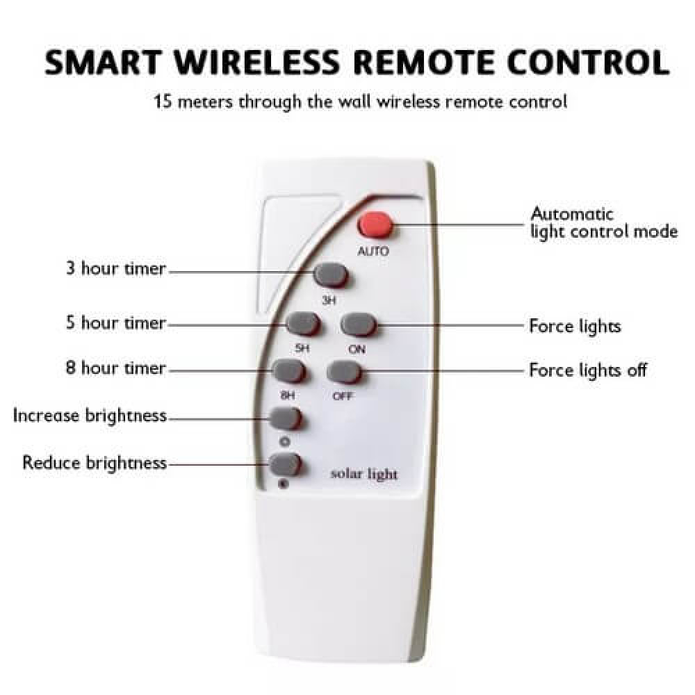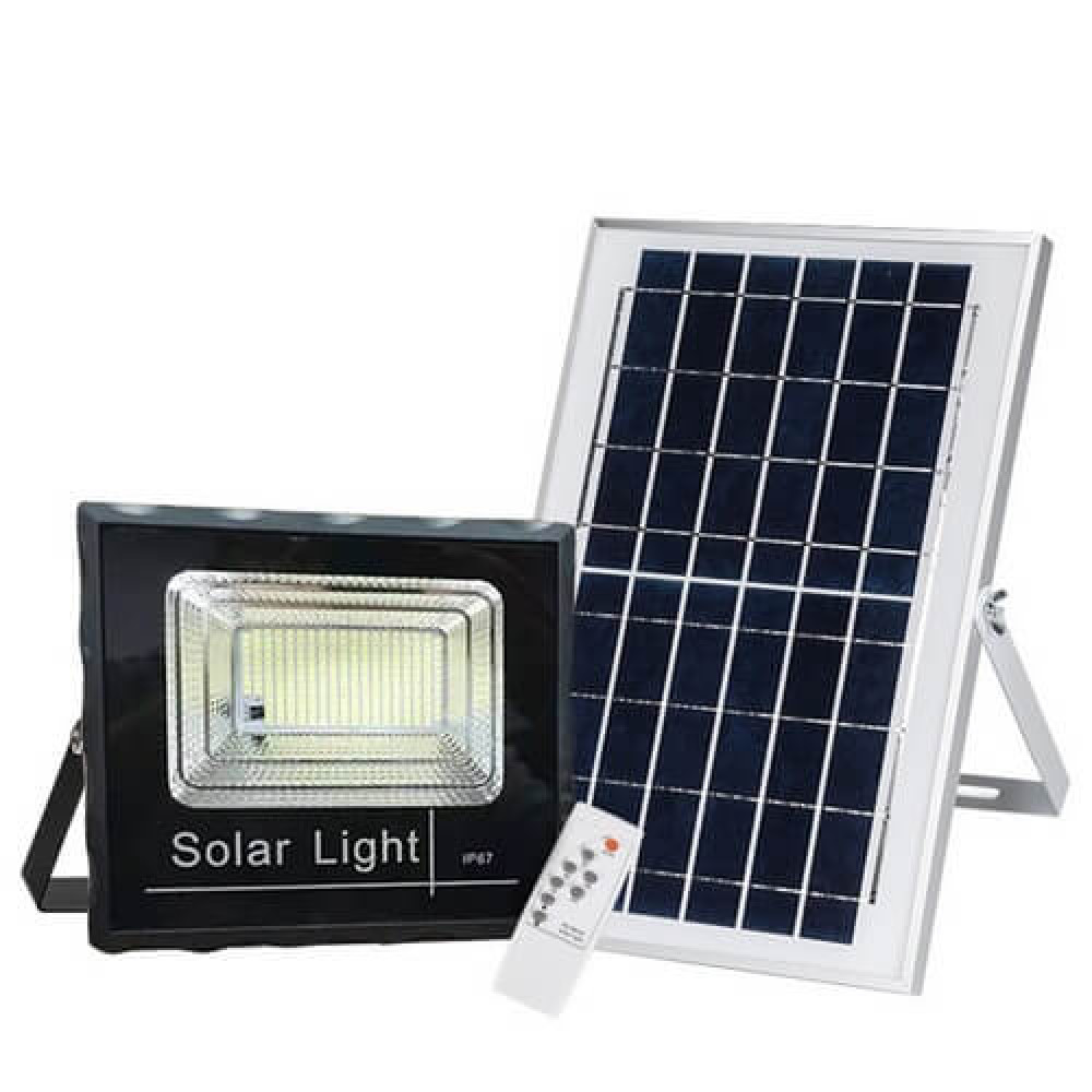 Дистанційне керування – є, Вимикач – on-off, Ступінь захисту – IP66, Розмір панелі – 350*350mm, Потужність – 40W, Світловий потік – 1375 lm, Сонячна панель – 6V, 8W, Батарея – 3.7V, 30AH, Матеріал – Алюміній, Час зарядки від сонця – 4-6 годин, Час роботи – до 12-ї години (на мінімальній яскравості), Кут розсіювання – 120°, Датчик руху, висота – ні, Датчик день – ніч – є
