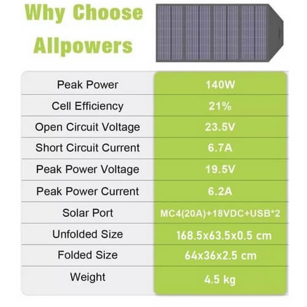 Водостійкий складний сонячний зарядний пристрій ALLPOWERS AP-SP18V 5V/120W - це компактне незалежне джерело енергії, що забезпечить своєму власнику нову ступінь свободи та комфорту на відстані від електромереж. Воно з легкістю замінить Power Bank, акумулятори або запасні батарейки, які турист зазвичай бере з собою, відправляючись в тривалий похід.